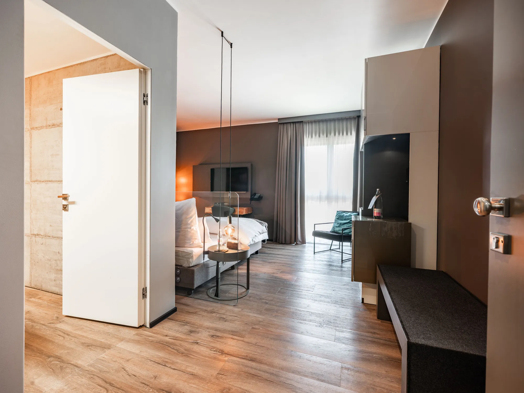 Das Standard Premium Doppelzimmer mit King-Size-Bett ist die ideale Wahl für Paare oder Gäste, die Komfort in einem modern gestalteten Raum schätzen. Das Zimmer bietet bis zu 28 m² Wohnfläche und verfügt über ein großzügiges King-Size-Bett, das für einen angenehmen und erholsamen Aufenthalt sorgt.