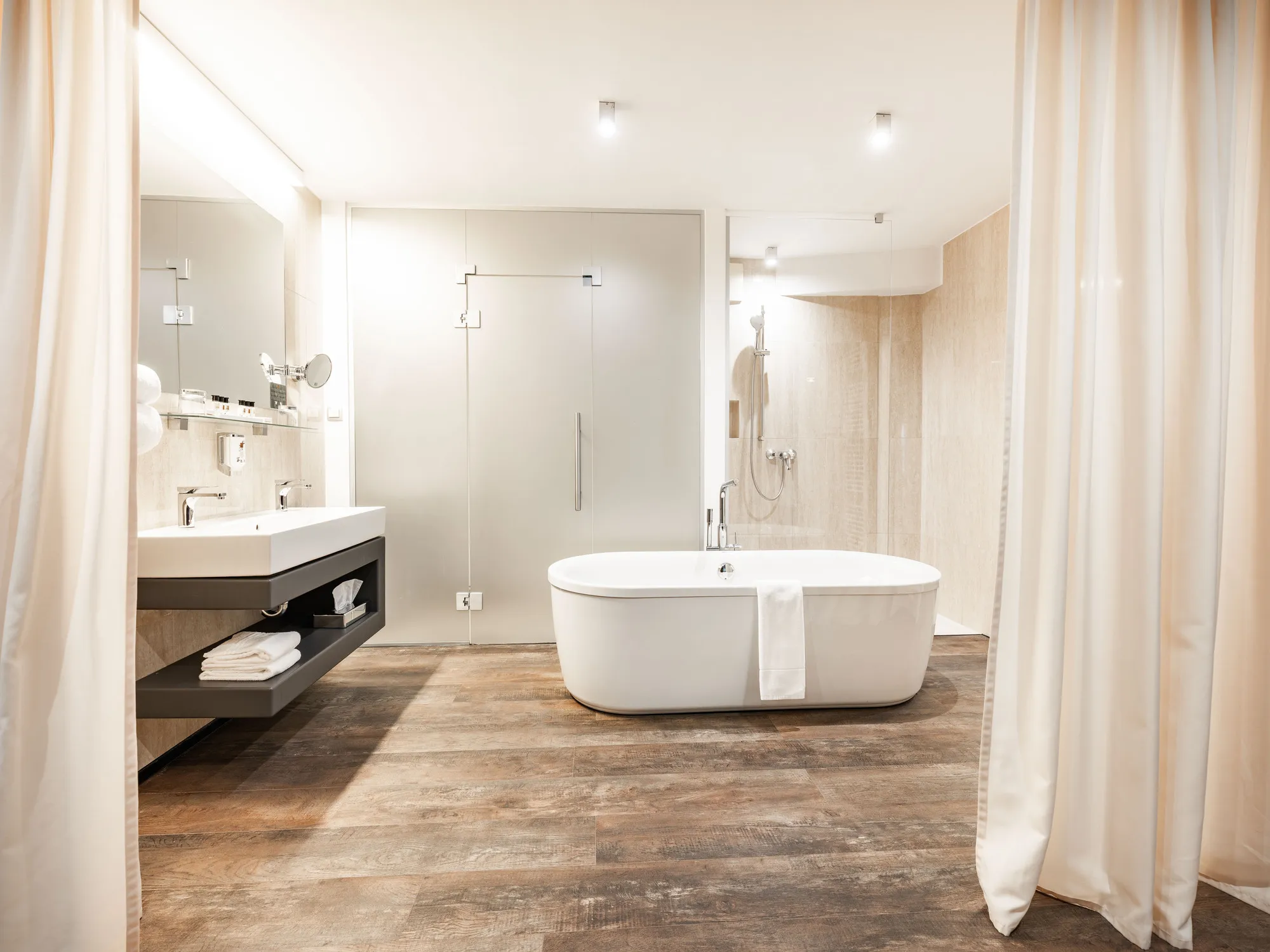 Die Wellness-Suite ist die ideale Wahl für Paare oder Gäste, die Hotelkomfort mit einem zusätzlichen Maß an Entspannung verbinden möchten. Abgerundet wird der Aufenthalt durch ein ausgezeichnetes Frühstück, das allen Gästen zur Verfügung steht.