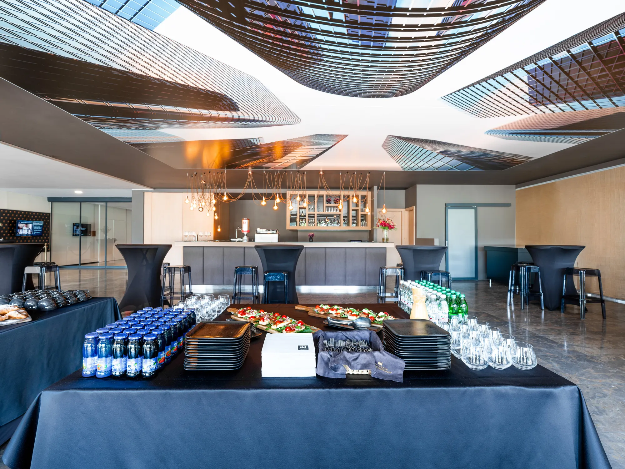 Strokovna postrežba in različne možnosti pogostitev (Coffe break, stoječa pogostitev, personalizirani meniji in À La Carte selekcija). Dogodek poteka na terasi, v bistroju ali brunch delu, glede na število udeležencev.
