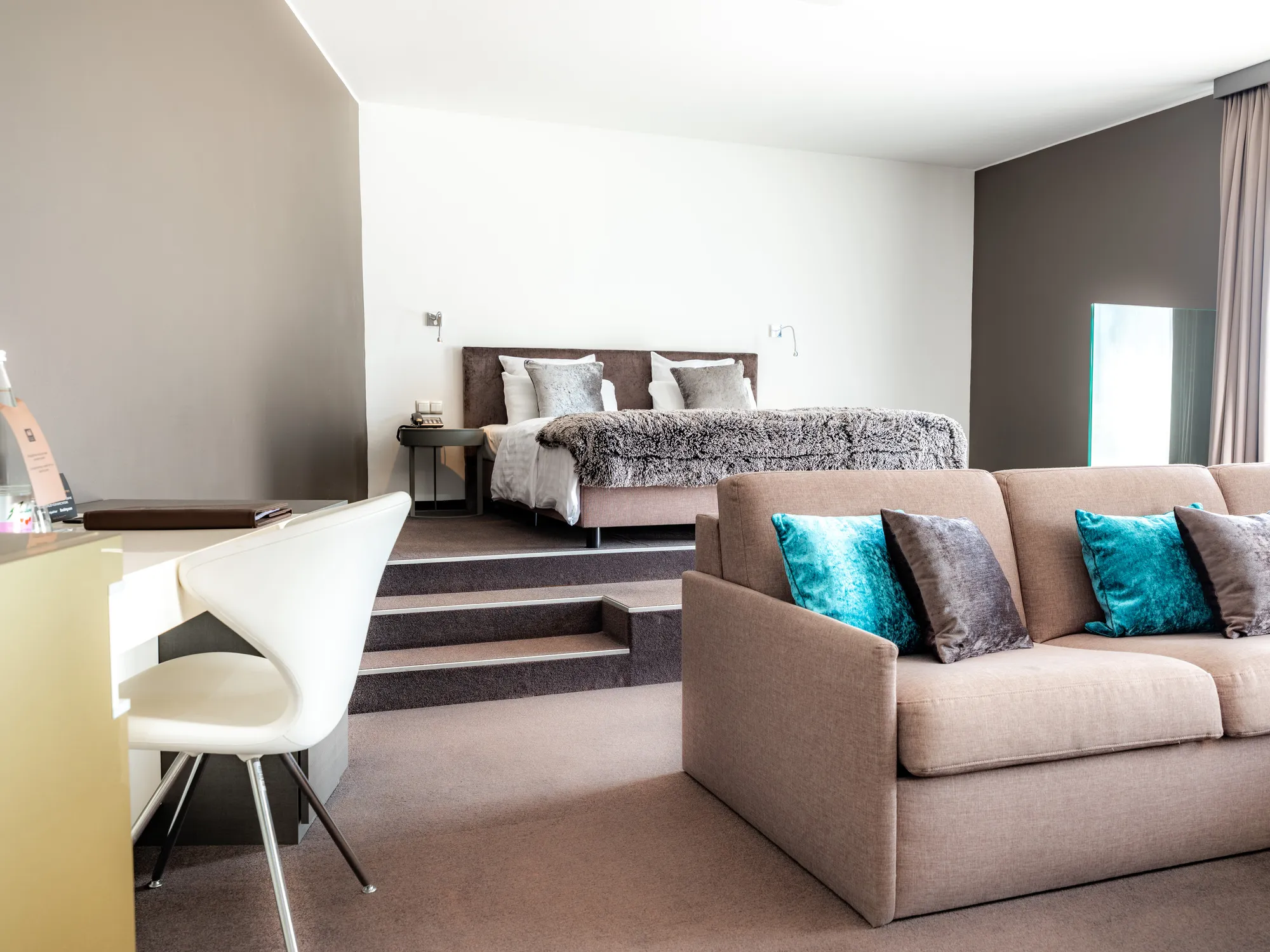 Elegantne in udobne sobe ter lastna podzemna garažna hiša za brezskrben in miren obisk.